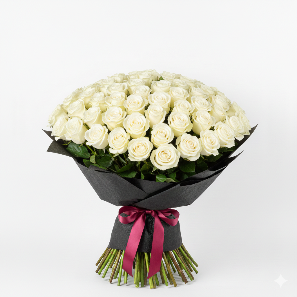 Mazzo composto di rose colombiane giganti della migliore qualità, caratterizzate da una grande apertura del bocciolo e da una lunga durata