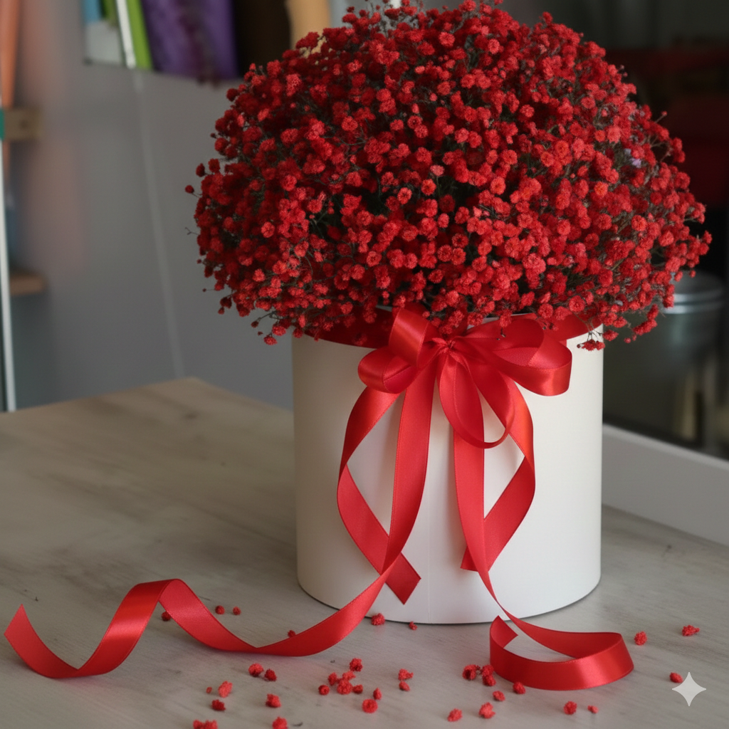 Porta un tocco di eleganza contemporanea e vivacità nei tuoi spazi con la nostra esclusiva collezione di Gipsofila (Nebbiolina) in Hat Box.