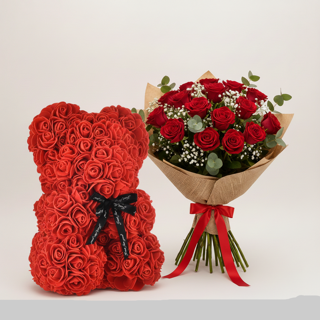 Eleva il tuo concetto di regalo con la nostra esclusiva combinazione Red Passion. Questo set non è solo un omaggio floreale, ma una vera e propria dichiarazione di stile e sentimento, che unisce il fascino intramontabile delle rose fresche alla creatività di un oggetto di design.